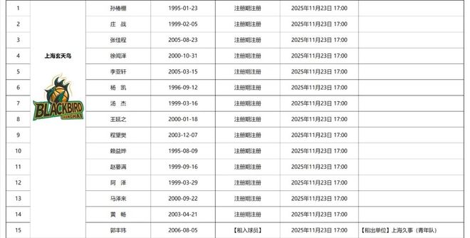 直接从宏远青训租借了,段锦楦、张家睿、赵保乐三名小将,还有同为宏远青训出身的邹运、曾效力于广州龙狮的李健豪程诺。而此前因伤没再代表南京同曦出战的选秀球员李云开也完成新就业。